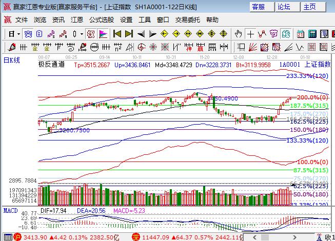 咨詢:13333833889滬指周二低開震蕩延續(xù)上漲態(tài)勢呈現(xiàn)八連陽走勢,漲幅逐級縮小,深市唯獨(dú)創(chuàng)業(yè)板指小跌。板塊方面,釀酒、家電、保險、醫(yī)藥和食品等板塊領(lǐng)漲,建材、鋼鐵、券商和煤炭領(lǐng)跌,石油、銀行相對較弱;題材方面,僅次新、地?zé)崮芎?G局部表現(xiàn),區(qū)塊鏈個股分化,自由港、軟件等領(lǐng)跌,個股下跌居多,成交量近一周來首次縮量。技術(shù)方面,滬指日K線最高與江恩百分比2倍零度位3418點(diǎn)僅一點(diǎn)之差,量能的萎縮顯現(xiàn)持續(xù)上行后短期動力衰竭,本周60分鐘時間點(diǎn)是早盤第二個小時,關(guān)注指數(shù)點(diǎn)位與極反通道強(qiáng)勢外軌線關(guān)系,短周期15分鐘極反通道生命線走平,30分鐘生命線修復(fù)中,此周期預(yù)計不會復(fù)制15分鐘消耗時間的方式修復(fù),而是以空間進(jìn)行回踩確認(rèn)。日線零度位置短期上行的重要阻力位上突,MACD最高柱子已確立,已連續(xù)兩天提示短線可做高拋。創(chuàng)業(yè)板如期到達(dá)極反通道生命線位置,MACD反彈到零軸位置,小票跟隨主線進(jìn)行短期的回踩確認(rèn)還是二八轉(zhuǎn)換借力,盤中繼續(xù)觀察做策略調(diào)整,倉位中長線4成倉持股不動,短線倉3成高拋后等待再次出手信號,暫定60分鐘生命線為下次信號買點(diǎn),3393、3385為日內(nèi)支撐,3418、3424為日內(nèi)壓力。僅供參考,不構(gòu)成任何投資建議。