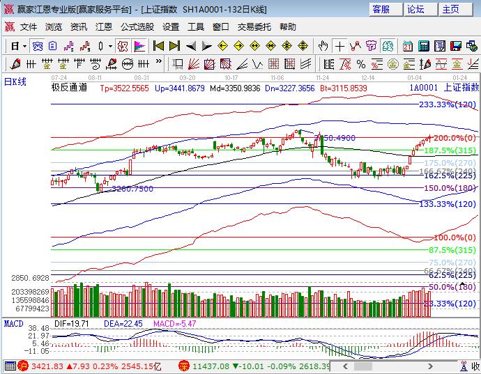 咨詢:13333833889周三滬指低開震蕩延續(xù)小漲且呈現(xiàn)九連陽(yáng)走勢(shì),早盤震蕩上攻,午盤出現(xiàn)一波回調(diào)在權(quán)重帶動(dòng)下又收復(fù),深市幾大指數(shù)均下跌。板塊方面,石油、銀行權(quán)重大漲,保險(xiǎn)及周期股鋼鐵、有色、化工走弱;題材方面,區(qū)塊鏈和天然氣引領(lǐng)概念股,石墨烯、豬肉、量子通信、鋰電、芯片和5G概念跌幅靠前,個(gè)股下跌居多成交量較周三略有增加。技術(shù)方面,滬指日K線收在江恩百分比2倍零度位3418點(diǎn)上方,未來(lái)幾天還將圍繞此線反復(fù),MACD最高柱子已確立,已連續(xù)兩天提示短線可做高拋。昨日午盤脈沖式下行在近段時(shí)間還會(huì)出現(xiàn),預(yù)計(jì)極別會(huì)越來(lái)越大,日線前高及極反通道外軌線是強(qiáng)壓力,短周期30分鐘回踩生命線的動(dòng)作還在持續(xù)中。創(chuàng)業(yè)板指江恩百分比180度1780位置不破慢慢修復(fù)將收復(fù)生命線,上證50進(jìn)入前期頭部后橫盤可微調(diào)等待均線跟隨。倉(cāng)位中長(zhǎng)線4成倉(cāng)持股不動(dòng),短線倉(cāng)3成高拋后等待再次出手信號(hào),暫定60分鐘生命線為下次信號(hào)買點(diǎn),3395、3385為日內(nèi)支撐,3424、3433為日內(nèi)壓力。僅供參考,不構(gòu)成任何投資建議。