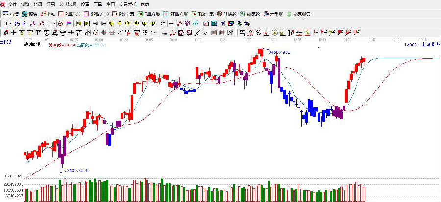 ☆依據贏家江恩理論系統極反通道提示:周三,滬指在60分藍色外軌線震蕩整理,外軌線阻力是3430附近,30分生命線支撐3400點,日線生命線3350點附近,依據規則,日線生命線之上,中期趨勢向上為主。