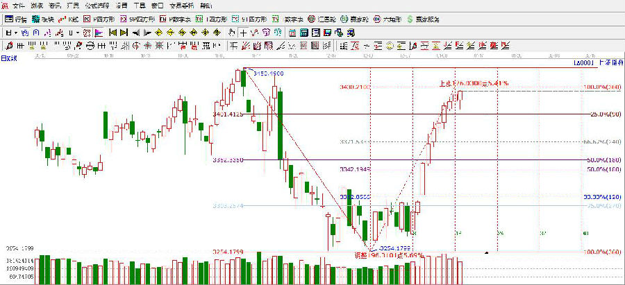 ★依據贏家江恩理論系統江恩波段百分比提示:滬指盤中再次回踩90度3400附近后回升,短線支撐依舊是3401點,以及240度3380附近。阻力位關注百分比45度線3425點附近。