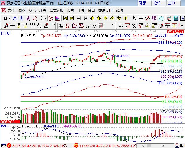 滬指周四低開震蕩延續小漲且呈現罕見十連陽走勢,深市場幾大指數走勢強于滬指,市場風格切換到小票題材。板塊方面,保險、銀行領漲權重,建材、鋼鐵、煤炭、工程機械、釀酒和家電領跌;題材方面,區塊鏈、次新、大數據、人工智能和5G引領題材,漲價概念走勢較弱,個股上漲居多成交量萎縮。技術方面,滬指日K線圍繞江恩百分比2倍零度位3418震蕩,MACD紅色柱子逐漸走短,下方315度是3370點,上方強勢外軌線3465附近;短周期15、30分鐘依托生命線運行,60分鐘生命線確認方式,一種是通過空間調整確認,一種是通過時間橫盤生命線上移,市場選擇那種我們拭目以待。創業板指再度回踩江恩百分比180度1780位置拉升,下一階段1800--1840這區間是日、周生命線、均線系統的密集區,以什么樣的方式運行決定了小盤的強弱程度,上證50進入前期頭部后橫盤可微調等待均線跟隨。倉位中長線4成倉持股不動,短線倉3成高拋后等待再次出手信號,暫定60分鐘生命線為下次信號買點,3414、3405為日內支撐,3435、3445為日內壓力。僅供參考,不構成任何投資建議。