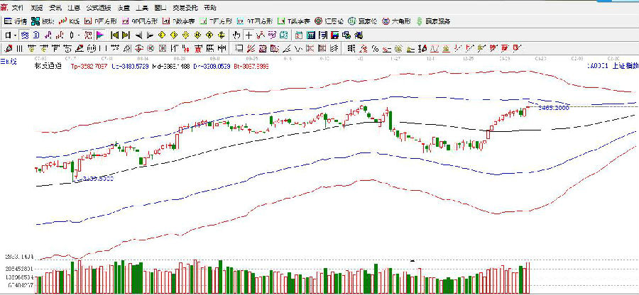 江恩看盤綜述:依據贏家江恩技術工具分析得出:周三,滬指再次強勢上攻,突破前期高點再創新高。并觸及極反通道日線藍色外軌線,依據規則,藍色外軌線短期會有一定的拋壓,短期需注意沖高回落以及震蕩的情況出現。藍色線阻力是3475點附近,支撐關注百分比270度3412點附近,下一時間窗口是1.22日附近。操作上,回避近期漲高的藍籌,關注調整過后的低位業績不錯的標的。
