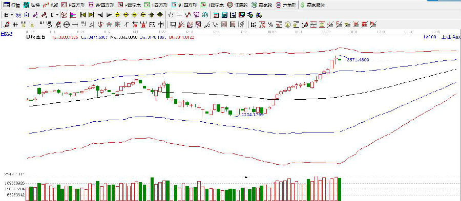 ★依據(jù)贏家江恩理論系統(tǒng)極反通道提示:滬指繼續(xù)在藍色線之上強勢區(qū)域運行,再收十字星,表明周線藍色上軌線壓力凸顯,短期繼續(xù)關(guān)注周線藍色上軌線3575點附近。