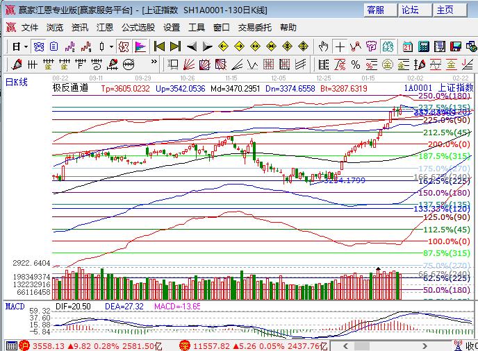 上周五滬深指數小幅低開后震蕩持續走高,主板亢奮情緒過熱時市場將會進行修正,尾盤金融股快速回落,預示著市場日線結束持續走高轉入預期的震蕩局勢,創業板走勢遇到上周所提示的時間窗已轉好,大小指數階段進入一致性。本輪牛市的主線上證50代表股如銀行有望進入休整期,盤中小票活躍度會逐漸轉強,但并非全面表現,業績依然是選股操作的第一要素。長線關注板塊:銀行、地產、工程機械、消費、醫藥;短期關注:醫藥、互聯網金融、傳媒;技術方面,滬指短周期關注15分鐘生命線得失,此線決定著走震蕩上行還是橫盤下探做箱體,向上3590點是紅色外軌線位置,下方藍色強勢外軌線3500點左右(60分鐘生命線附近),上證50結論是看空不做空,創業板的機會在上周時間窗得到確認,可以適量布局一定的倉位;倉位中長線4成倉持股不動,3536、3520為日內支撐,3578、3590為日內壓力。僅供參考,不構成任何投資建議。