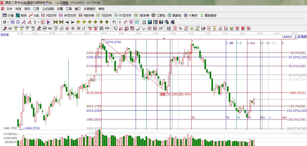 ☆依據贏家江恩系統黃金時間周期線提示:1.618的時間窗口之后,下一個短期的時間之窗是1月30日。