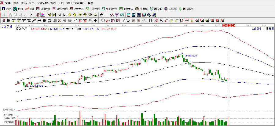 江恩看盤綜述:依據贏家江恩技術工具分析得出:周四,滬深指數繼續大幅殺跌,各短周期走勢均觸及藍色下軌線后,承接資金開始小幅涌現,市場轉入弱勢整理。依據極反通道物極必反規則,滬深指數短周期藍色線支撐附近應該有超跌反彈機會,百分比支撐繼續關注180度3420的支撐。短線繼續耐心等待指數見底反彈的信號。反抽阻力關注225度3462點,240度3476點附近,操作上,鑒于近期殺跌的主力都是業績或虧損的,所以目標可重點關注業績支撐且具有估值優勢的標的。