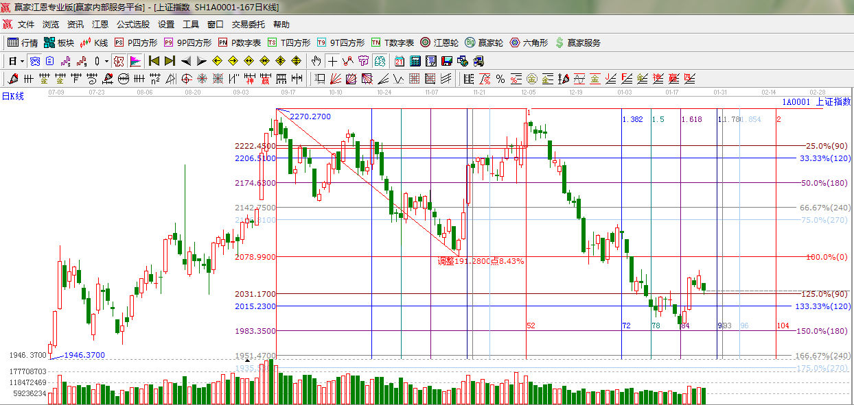 ★ 依據(jù)贏家江恩系統(tǒng)黃金時間周期線提示:1.618的時間窗口之后,下一個短期的時間之窗是1月30日。