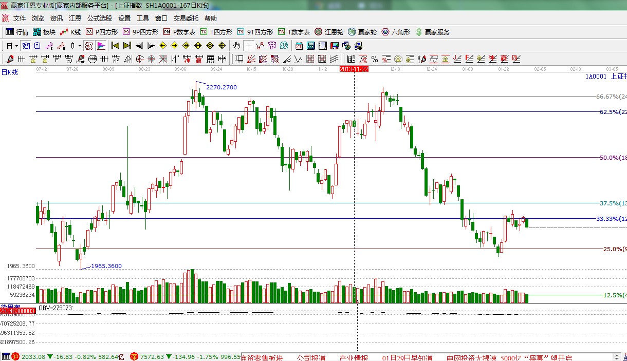 綜合分析:依據贏家江恩技術工具分析得出:指數趨勢運行在極反通道弱勢區域,空間方面蛇年最后一個交易日再次遇到120度線壓力回撤,今日盤中有望以2020點為多空爭奪重要點位,時間周期在12號下周三附近,因時間與空間未能形成共振休息看空為主,整體上激進者倉位保持在3成倉穩健者空倉休息。