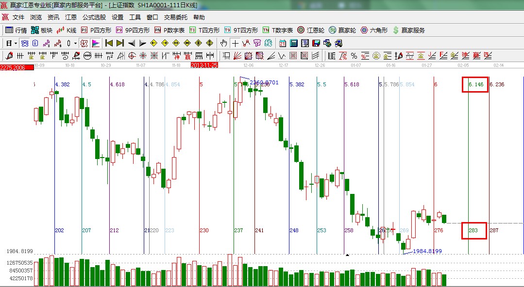 ★依據贏家江恩系統黃金時間周期線提示:馬年第一個時間窗為黃金分割第六個循環的6.146位置是下周三12號;