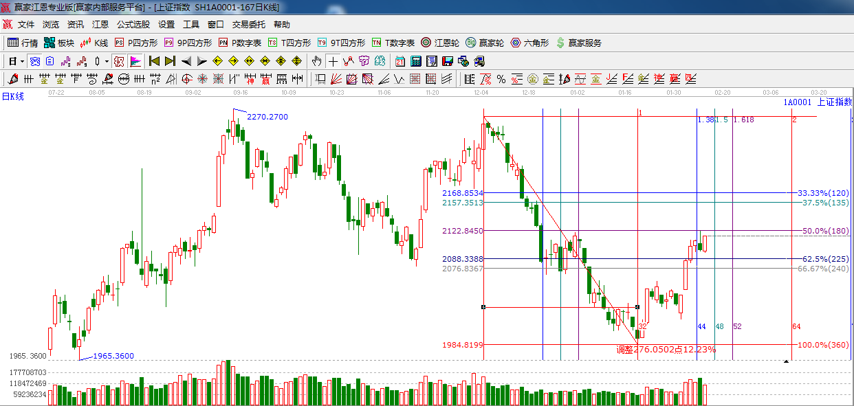 ☆依據贏家江恩系統黃金時間周期線提示:下周江恩時間窗口是2月18日,2月24日(黃金時間1.5,1.618的時間窗口)