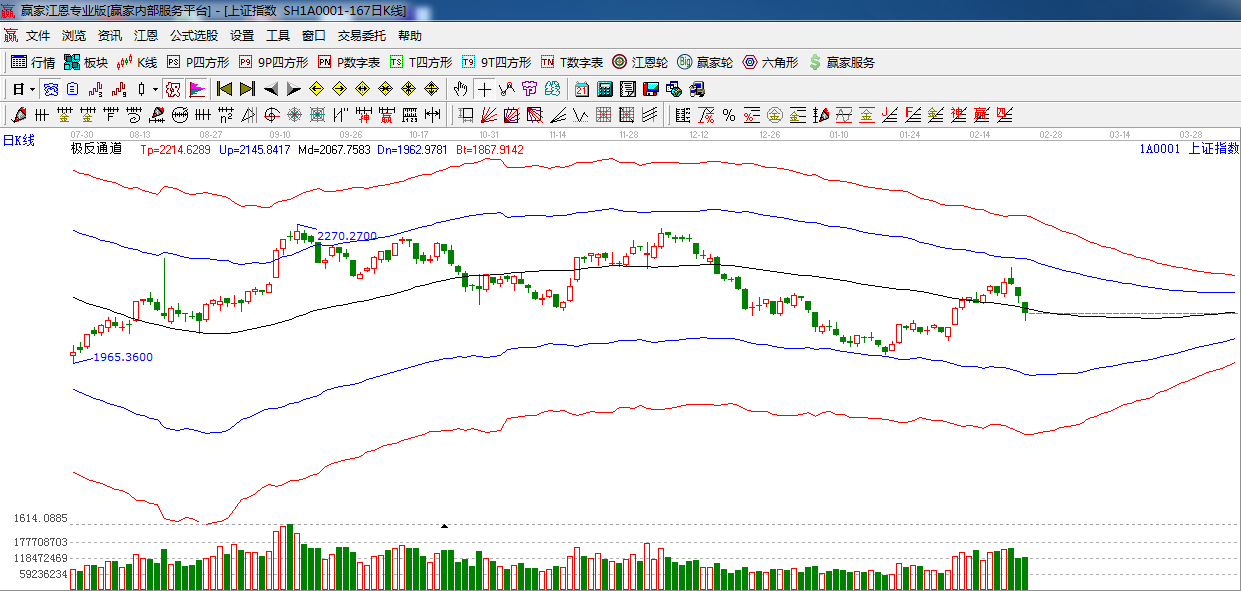 綜上所述:依據(jù)贏家江恩技術(shù)工具分析得出:昨日在房地產(chǎn)的利空打壓下,指數(shù)失守生命線,短期弱勢(shì),最終在江恩180度位置止跌(1849-2270波段),預(yù)計(jì)明日將圍繞此支撐震蕩整理,關(guān)注極反通道生命線的爭(zhēng)奪,上線則整體上升趨勢(shì)不變,繼續(xù)破線下行,調(diào)整時(shí)間將進(jìn)一步加長(zhǎng),操作上,結(jié)合情況適當(dāng)降低倉位,謹(jǐn)慎為主。星級(jí)風(fēng)險(xiǎn)提示,謹(jǐn)慎看多。
