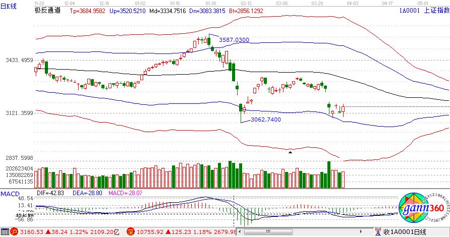 滬指上漲1.22%,報收3160.53點;深成指上漲1.18%,報收10755.92點;創業板上漲0.38%,報收1842.19點。從盤面上看,今日市場風向在切換,早盤科技股跳水時房地產、資源股則在快速拉升。從板塊指數上看,水泥、鋼鐵、房地產、券商、銀行等漲幅居前,軍工、醫療醫藥、電子設備等表現較弱。個股方面,萬科A尾盤一度封板,建設銀行、美的集團、伊利股份等大盤股漲幅一度超過5%。