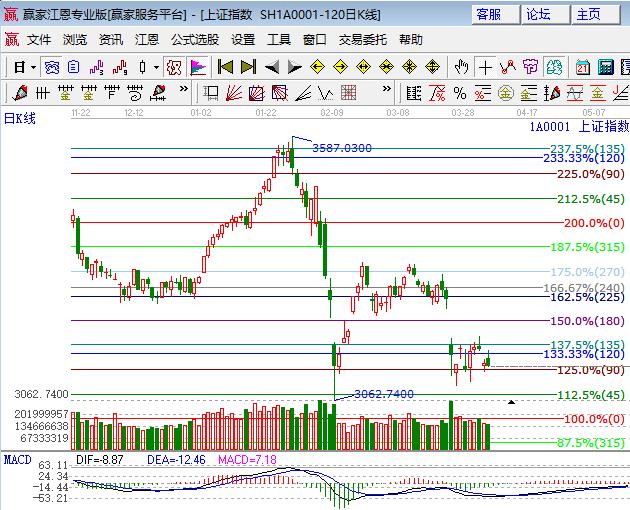 ①滬指日線弱勢下軌線走平是一個積極的信號,從目前的走勢看這一信號并不明顯,多周期處于弱勢情況,百分比90度位置是3125點,百分比強支撐位是3080附近,其它兩個指數未有明確的信號前,投資者不易重倉操作。
