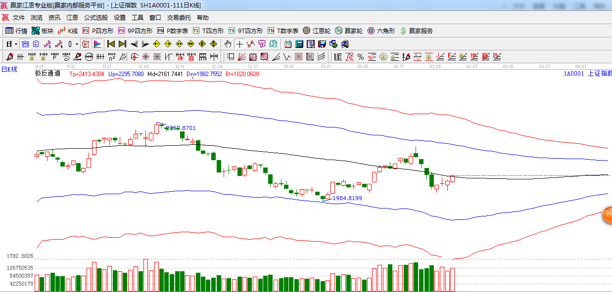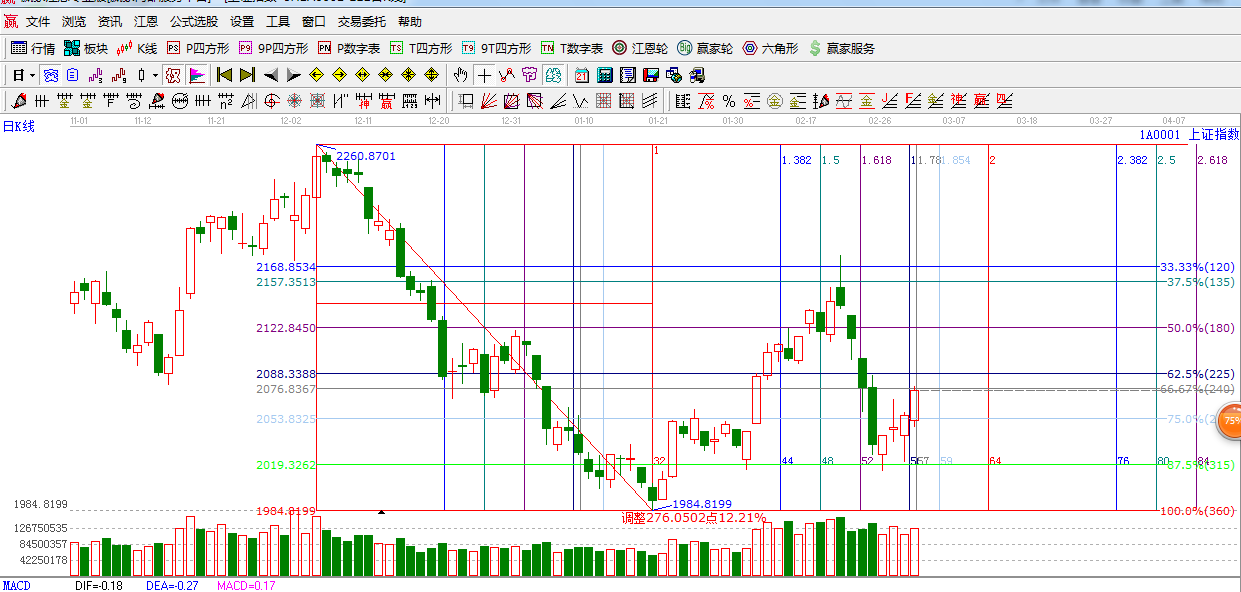 綜上所述:依據贏家江恩技術工具分析得出:周一延續上周五的強勢震蕩反抽,截至收盤,突破日線生命線,短期兩會的維穩行情將延續,上方阻力位2088點附近,預計短期大盤將圍繞生命線震蕩為主,操作上,控制倉位,逢低留意兩會概念股。星級風險提示,謹慎看多。