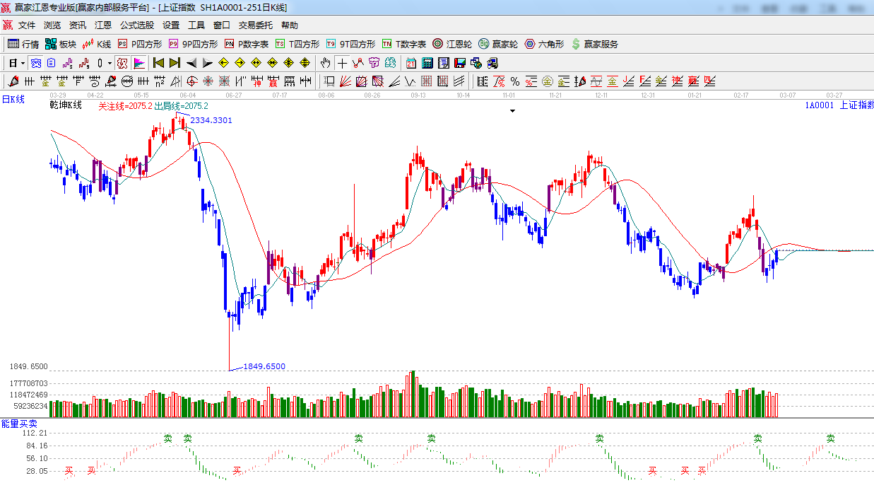 ☆依據贏家江恩系統能量買賣提示:綠色能量柱開始縮短,短期謹慎看空。