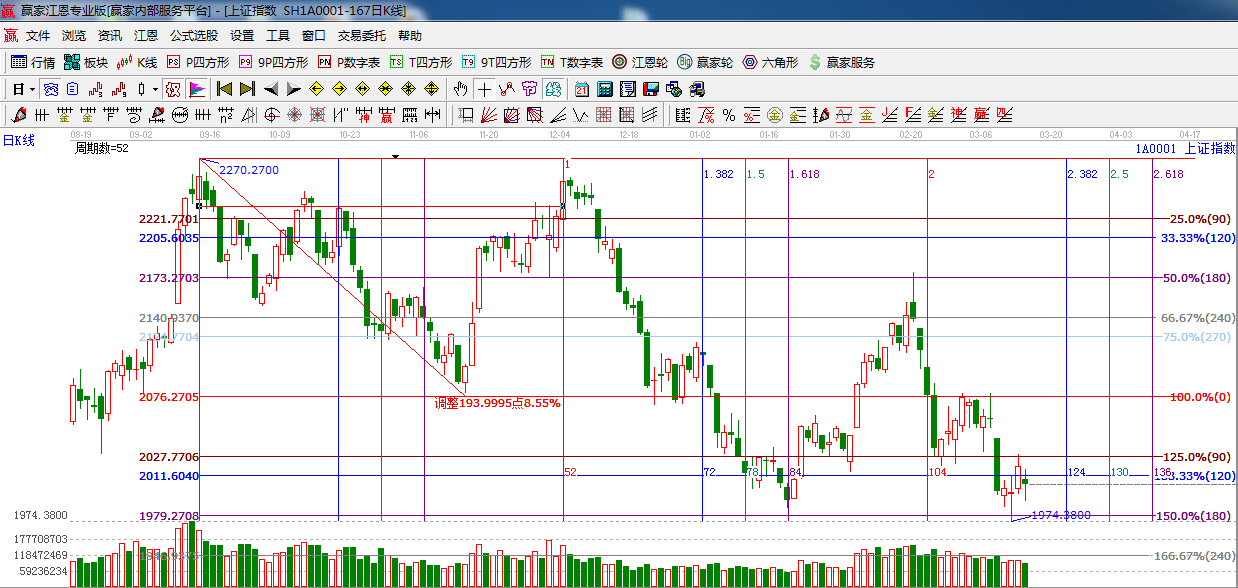 ★依據(jù)贏家江恩系統(tǒng)波段百分比提示:周四反抽90度位置,周五低開回落,下周關(guān)注阻力位90度2031點,缺口位置2051點,下方支撐180度位置1984點附近,240度位置1951點附近。