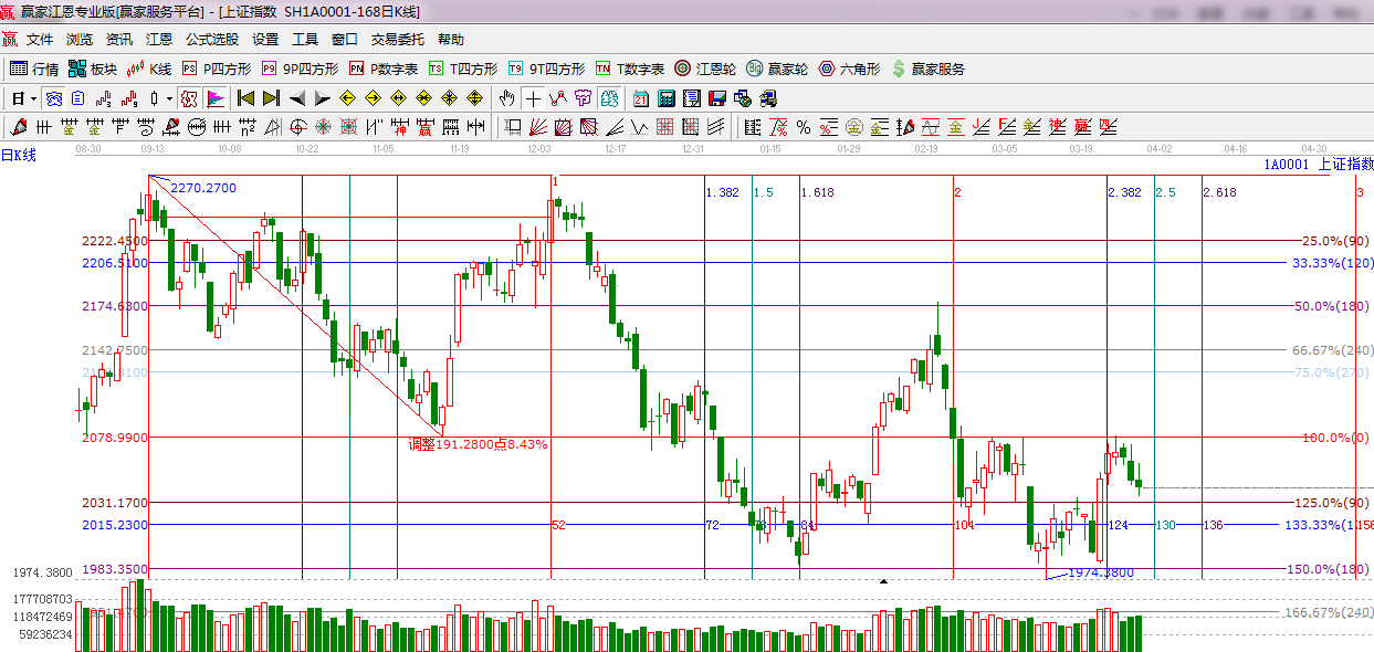 ☆依據贏家江恩系統極反通道提示:大盤收盤破位生命線,量能較昨日略有放大,依據規則,倉位降至3-5成,謹慎為主。
