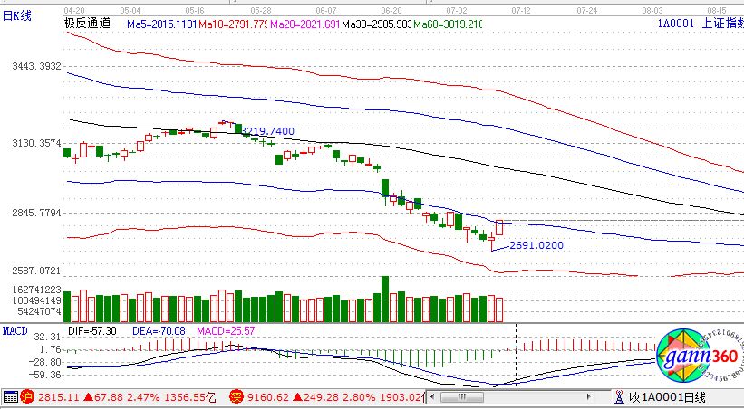 滬指漲2.47%,報(bào)2815點(diǎn);深成指漲2.80%,報(bào)9160點(diǎn);創(chuàng)業(yè)板指漲2.64%,報(bào)1581點(diǎn)。盤面上看,草甘膦、醫(yī)藥商業(yè)、可燃冰、水泥、鈦白粉、石墨電極、化工新材料、次新股等板塊漲幅居前。滬股通凈流入25億,深股通凈流入11億。相應(yīng)的極反通道指標(biāo)的支撐壓力提示,如下圖所示: