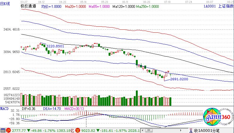 滬指跌1.76%,報2777點;深成指跌1.97%,報9023點;創業板指跌1.88%,報1563點。盤面上看,知識產權保護、網絡安全、大飛機、無人零售、國產軟件、人臉識別等板塊跌幅居前。滬股通凈流入2.6億,深股通凈流出3.3億。相應的極反通道指標的支撐壓力提示,如下圖所示: