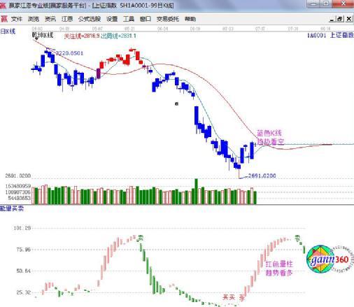 ☆依據贏家江恩理論系統乾坤K線提示:藍色K線,波段趨勢仍為空。