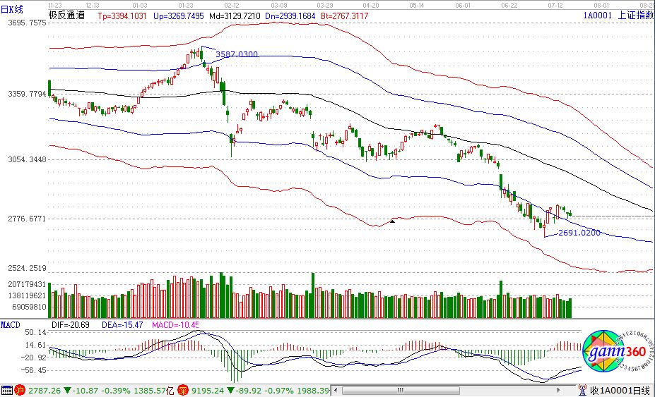 滬指跌0.39%,報收2787點;深成指跌0.97%,報收9195點;創業板跌0.85%,報收1607點。從板塊漲幅上看,啤酒、旅游、紡織、電力改革、在線旅游、半導體、PCB概念等漲幅居前;通信設備、鈦白粉、高送轉、無線充電、芯片、海南、知識產權保護等板塊跌幅居前。滬股通凈流入1.2億,深股通凈流出1億。相應的極反通道指標的支撐壓力提示,如下圖所示: