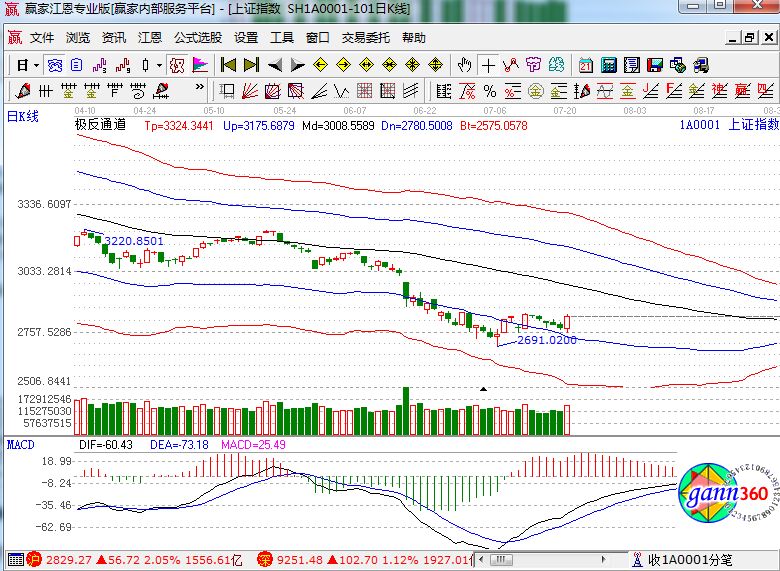 滬指漲2.05%,報收2829點;深成指漲1.12%,報收9251點;創業板漲1.23%,報收1609點。從板塊漲幅上看,銀行、保險、國產軟件、證券、數字中國、燃氣水務、工業互聯網等板塊上漲;在線旅游、養殖等少數板塊下跌。滬股通凈流入5.5億,深股通凈流入17億。相應的極反通道指標的支撐壓力提示,如下圖所示: