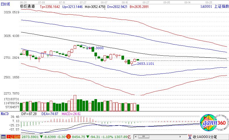 滬指跌0.70%,報2714點;深成指跌1.10%,報8454點;創(chuàng)業(yè)板指跌1.20%,報1439點。從盤面上看,甲醇概念股、ST板塊、農業(yè)股、煤炭、海南、大飛機等板塊上漲;高送轉、人臉識別、啤酒、次新股、5G、醫(yī)藥商業(yè)等板塊下跌。滬股通凈流入19億,深股通凈流入2.5億。相應的極反通道指標的支撐壓力提示,如下圖所示: