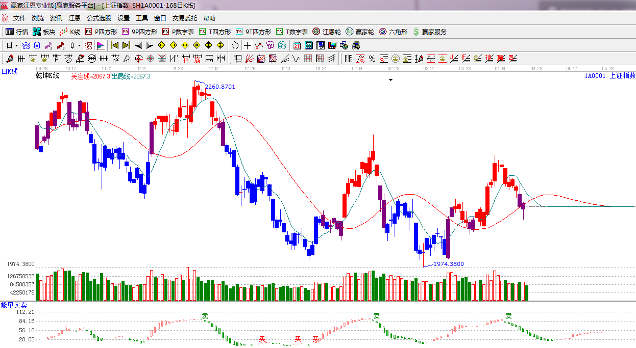 ★依據贏家江恩系統乾坤K線提示:紫色警示信號,并收盤站上紅色關注線,在K線沒由紫色變為藍色之前,短期謹慎看空。