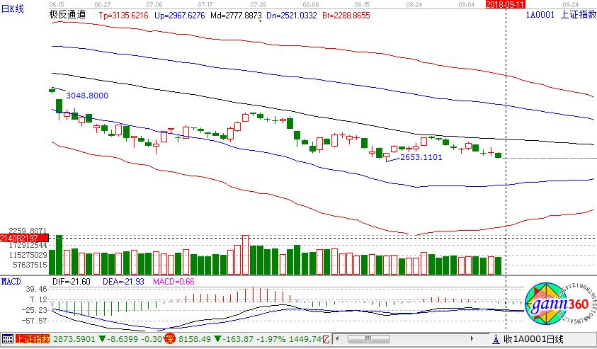 滬指跌1.21%,報收2669點;深成指跌1.97%,報收8158.49點;創業板跌2.41%,報收1390點。從盤面上看,特高壓、燃氣水務等少數板塊上漲;蘋果概念、小米概念、數字中國、稀土永磁、人臉識別、國產軟件、5G、證券等板塊跌幅居前。滬股通凈流出2.6億,深股通凈流出2.1億。相應的極反通道指標的支撐壓力提示,如下圖所示: