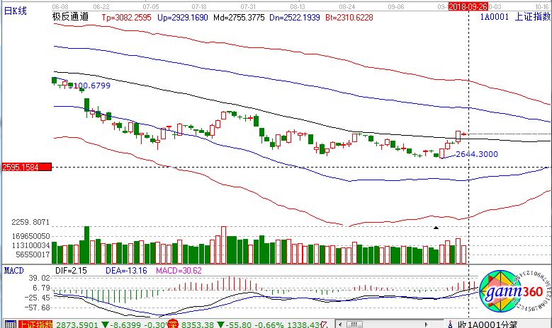 滬指跌0.58%,報收2781點;深成指跌0.66%,報收8353點;創業板跌0.38%,報收1405點。從盤面上看,養殖業、豬肉、物流、可燃冰、油改、軍工等板塊上漲;機場航運、房地產、租售同權、深圳國資改革、銀行、粵港澳大灣區等板塊跌幅居前。相應的極反通道指標的支撐壓力提示,如下圖所示: