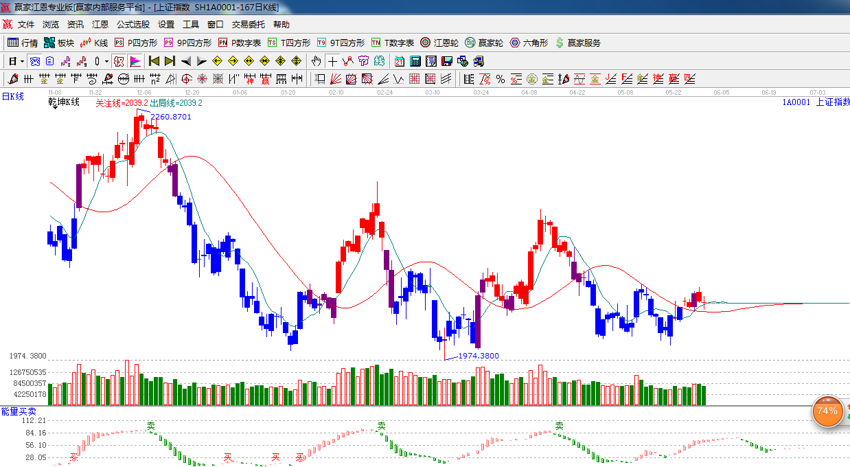 ☆依據贏家江恩系統極反通道提示:生命線之下震蕩整理,收陰十字星,生命線阻力2050點。目前整體 趨勢偏弱。