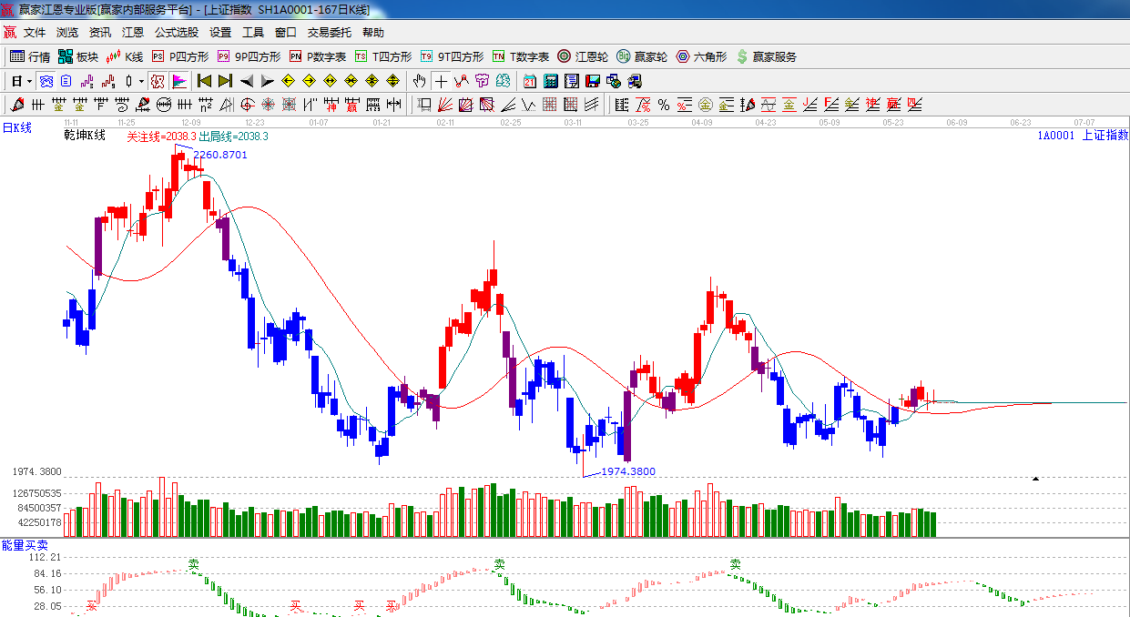 ☆依據贏家江恩系統極反通道提示:生命線之下震蕩整理,收陰十字星,生命線阻力2050點。目前整體 趨勢偏弱。