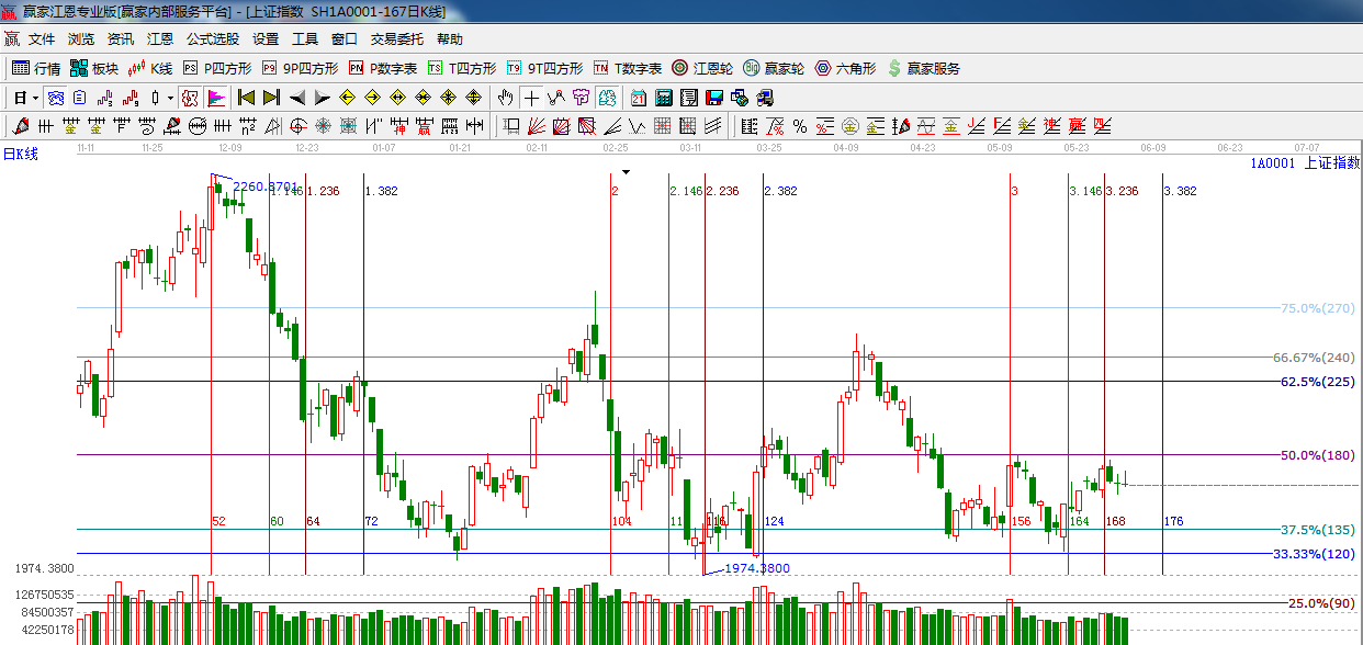 ☆依據贏家江恩系統黃金時間周期線提示:28日時間窗口,指數沖高回落, 形成刺透形態,短期謹慎,下一時間窗口關注6月10號。