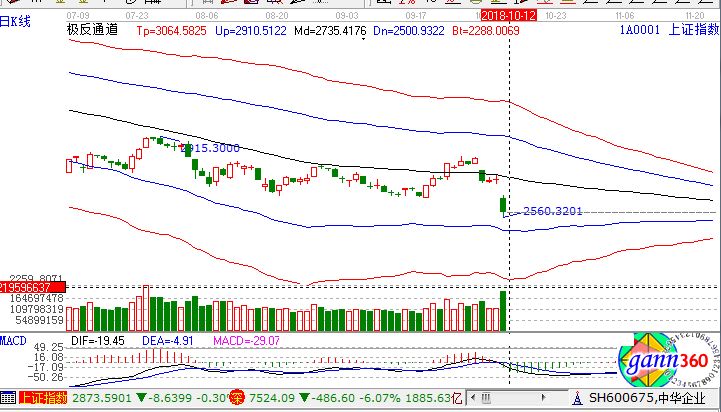 滬指跌5.22%,報收2583點;深成指跌6.07%,報收7524點;創(chuàng)業(yè)板跌6.30%,報收1261點。滬股通凈流出21億,深股通凈流出13億。相應(yīng)的極反通道指標(biāo)的支撐壓力提示,如下圖所示: