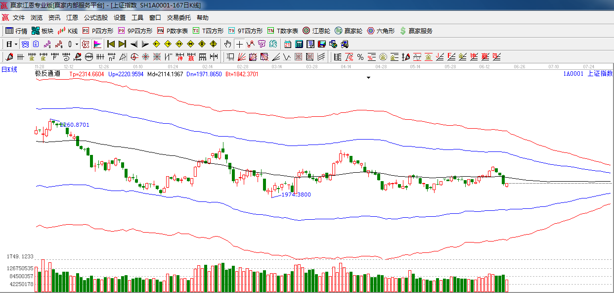 ☆依據贏家江恩系統極反通道提示:中陰線破位生命線,小陽線反抽,依然弱勢區域,看空。