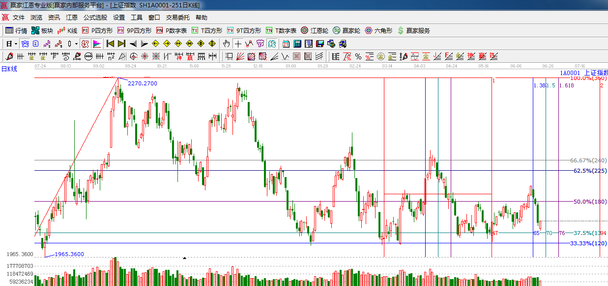 江恩看盤綜述:依據贏家江恩技術工具分析得出:指數經過周四的大跌,周五下跌動能暫有所減弱,在江恩135度位置止跌小幅反抽,量能 大幅萎縮,今日謹防有沖高回落的動作,本周前半周或將保持這種弱勢整理走勢,下一時間窗口在25號附近。操作上,倉位控制在3成,減少 操作頻率。