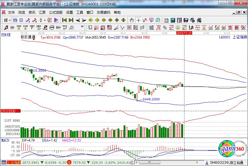 滬指跌2.13%,報(bào)收2645點(diǎn);深成指跌2.83%,報(bào)收7879點(diǎn);創(chuàng)業(yè)板跌2.80%,報(bào)收1355點(diǎn)。滬股通凈流出18億,深股通凈流出9億。相應(yīng)的極反通道指標(biāo)的支撐壓力提示,如下圖所示: