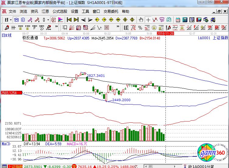 滬指跌0.04%,報(bào)收2574點(diǎn);深成指漲0.25%,報(bào)收7635點(diǎn);創(chuàng)業(yè)板漲0.83%,報(bào)收1315點(diǎn)。盤(pán)面上看,通信設(shè)備、5G、網(wǎng)絡(luò)安全、獨(dú)角獸概念、手游、網(wǎng)絡(luò)游戲等板塊漲幅居前;福建自貿(mào)區(qū)、機(jī)場(chǎng)航運(yùn)、高送轉(zhuǎn)、銀行、物流、石油等板塊跌幅居前。滬股通凈流入3.6億,深股通凈流入5300萬(wàn)。相應(yīng)的極反通道指標(biāo)的支撐壓力提示,如下圖所示: