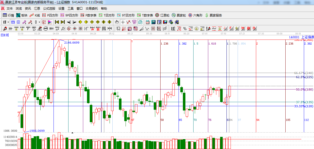 ☆依據(jù)贏家江恩系統(tǒng)黃金時間周期線提示:時間窗口為7月11日,14日,下周關(guān)注17號。
