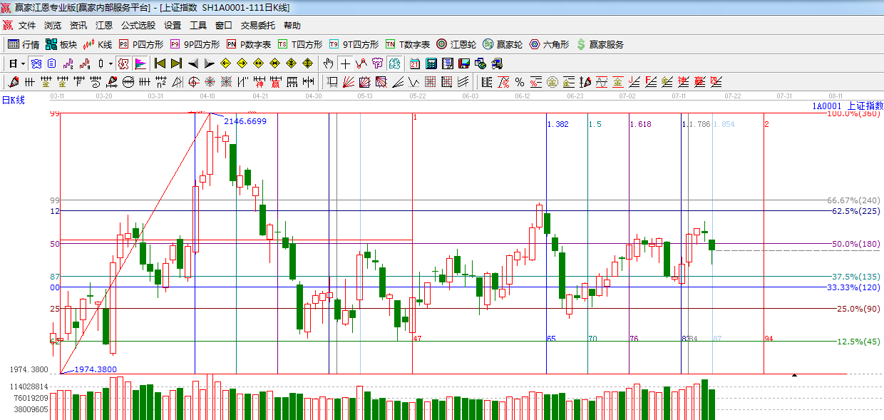 江恩看盤綜述:依據(jù)贏家江恩技術(shù)工具分析得出:17號時間窗口,指數(shù)低開低走,生命線附近探底回升,下周11只新股上市,對市場資金會起到一定影響,預(yù)計大盤短期維持反復(fù)震蕩走勢,依據(jù)規(guī)則生命線不破,整體上升趨勢不變。操作上,合理控制倉位,短線,波段結(jié)合。