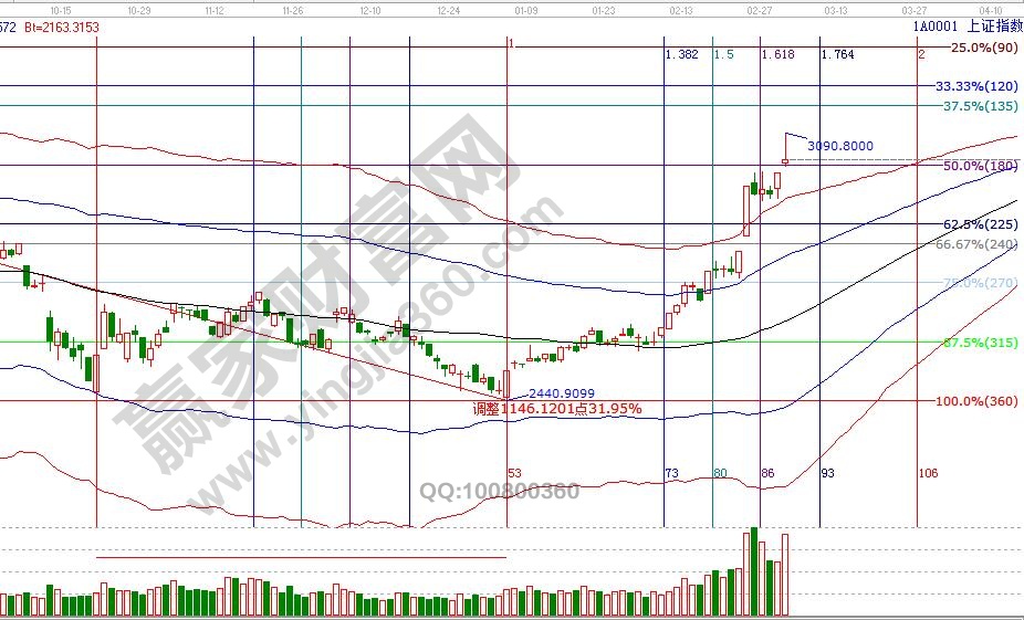 2月21號大盤上攻2800點收上影線,次日強勢反包延續(xù)強勢,4號上影線能否收復延續(xù)上攻需看量能配合,同時極反通道5條線不斷上移為未來K線回歸通道做準備,短期趨勢拐點需要時間窗口確認;空間點位上,輪中輪、四方形顯示5號盤中支撐3000點,3055、3064為盤中壓力,7號是日線時間窗口。操作策略,大盤維持日線震蕩,持股上享受瘋狂的同時不斷提高止賺位,即保護了利潤又可將利潤最大化,此位置已不適合大多數(shù)投資者開新倉,整體倉位保持在6成左右。