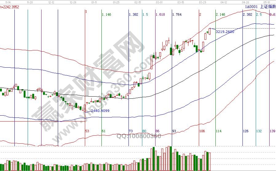 大盤日K線不斷刷新近期高點,極反通道紅色外軌線是3250附近,站穩一線看高一線規則,此線是確認藍線后反彈的目標位;空間點位上,輪中輪、價格四方形提示,3196-3175為盤中支撐,3240-3254為盤中壓力,4月5號為日線時間窗口,考慮假期因素,時間窗口效應會提前至4或推遲下周一8號。操作策略,日線再度進入超強通道,穩健者倉位保持在5成,激進者倉位保持在7成,靠近紅色外軌線持倉遵守提高止賺位策略。