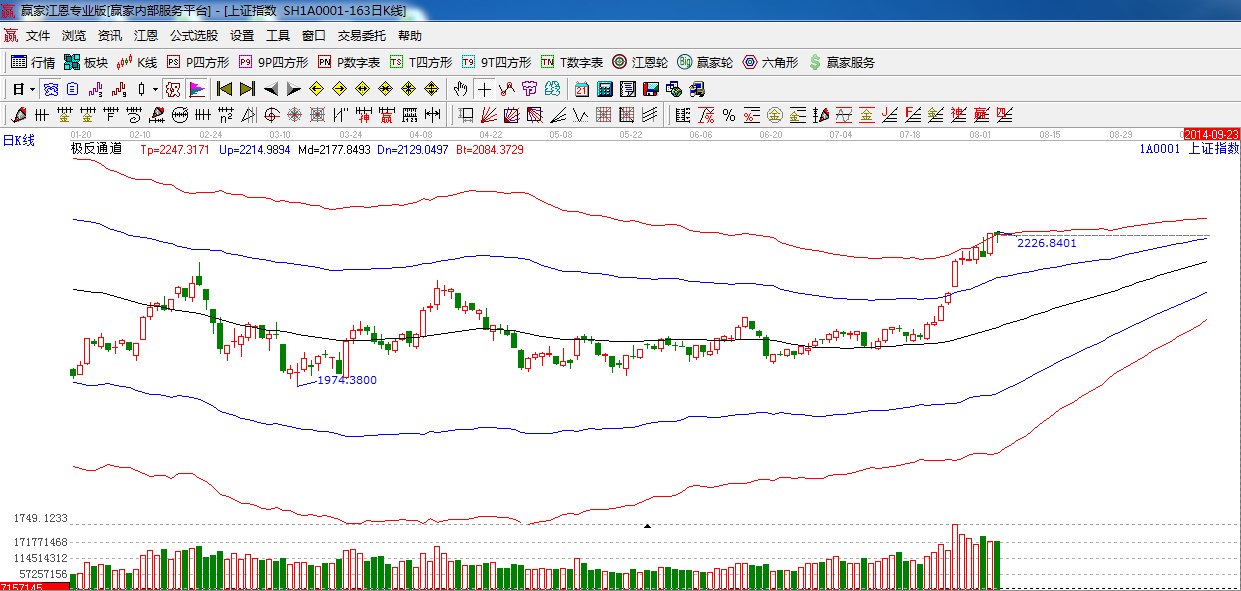極反通道提示:指數繼續圍繞紅色外軌線強勢震蕩,短期謹慎為主。