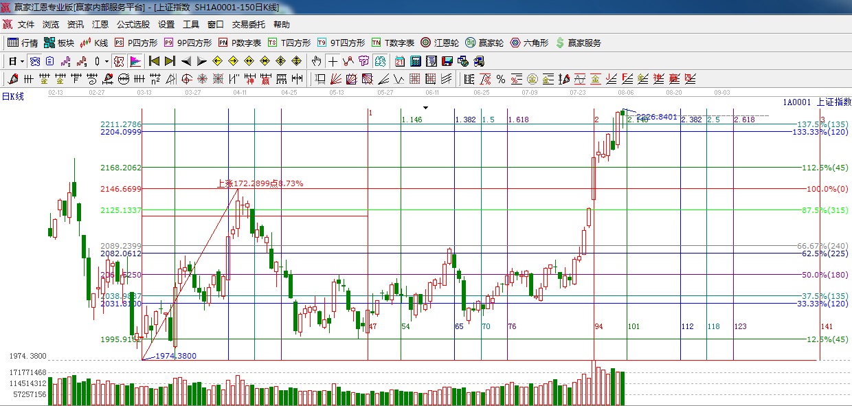 ☆依據贏家江恩系統黃金時間周期線提示:本周時間窗口是8月06日