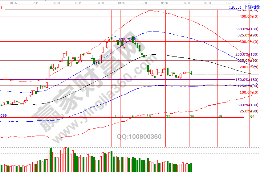 江恩時間周期精準判斷出5月份市場拐點,4、5號是6月份第一個日線時間窗口,投資者明后兩天應關注好市場方向選擇;趨勢與空間結合判斷,目前整體處于反彈周期,上周進入反彈第一目標區2928-2960后量能不及回落,指數不破波段百分比延伸線二分位2834點反彈預期不變,待突破第一區間后反彈將全面展開。4號盤中壓力是135度2911點、180度2928點,盤中支撐是45度2877、0度2860點,6月時間窗口分別是4(5)號、13號、25號。操作策略,指數擊破黑色生命線進入弱勢區域,整體持倉保持在3-4成,做到進可攻退可守。