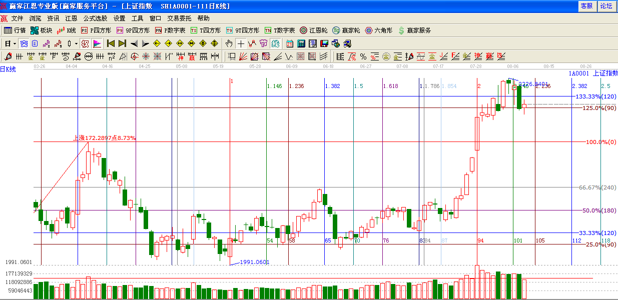 ☆依據贏家江恩系統黃金時間周期線提示:繼8月06日窗口,指數誘多,隨后指數如期中陰下跌。