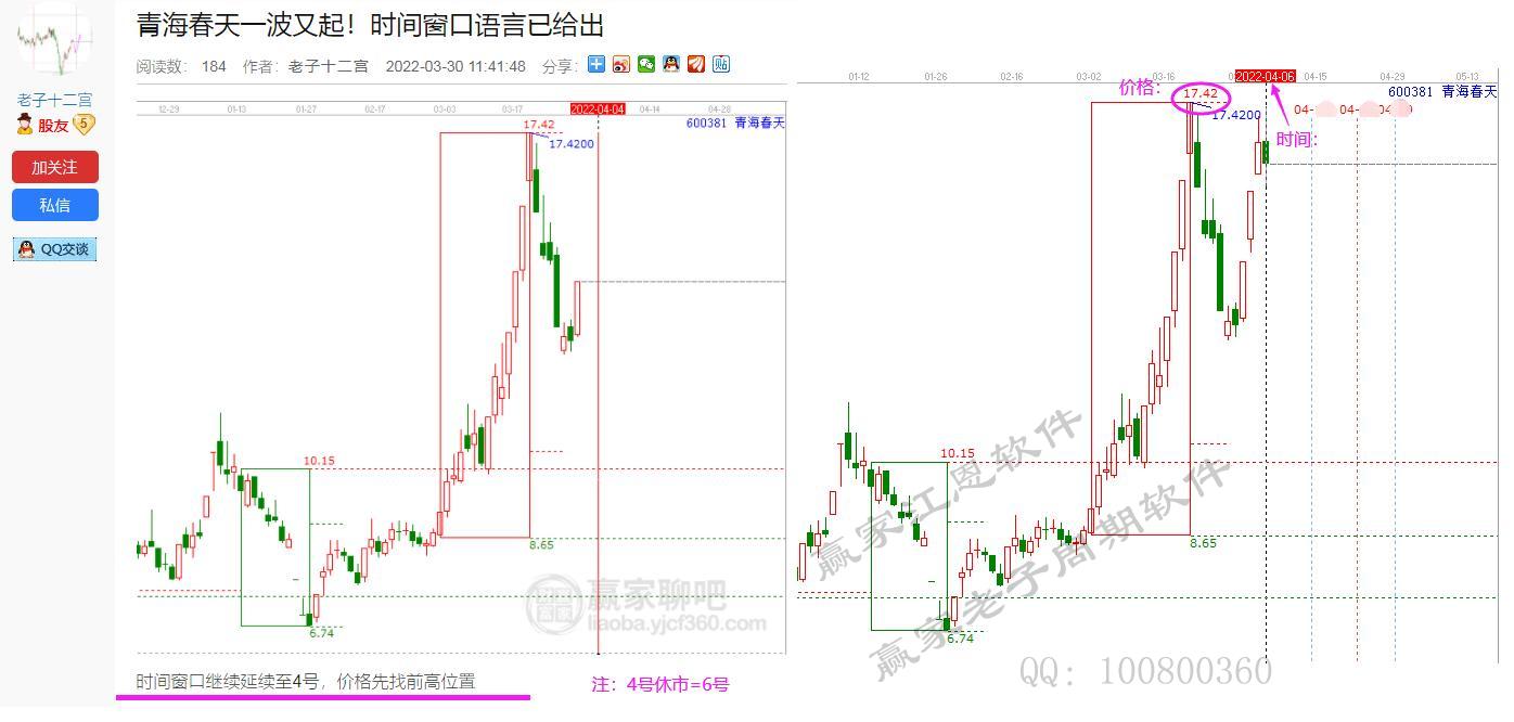 研究到最后,時價結合就是何時何價!青海春天贏家再次反復論證時價預測技術!一次次的走勢證明!30號預測上漲趨勢至下個時間窗4號,價格找前高17.42元。