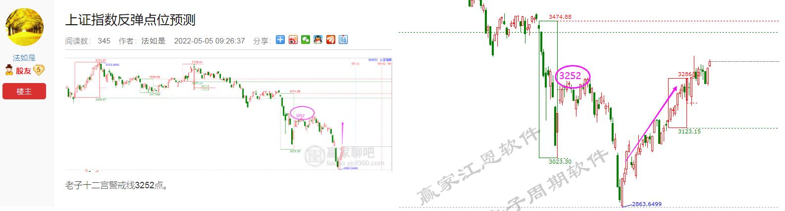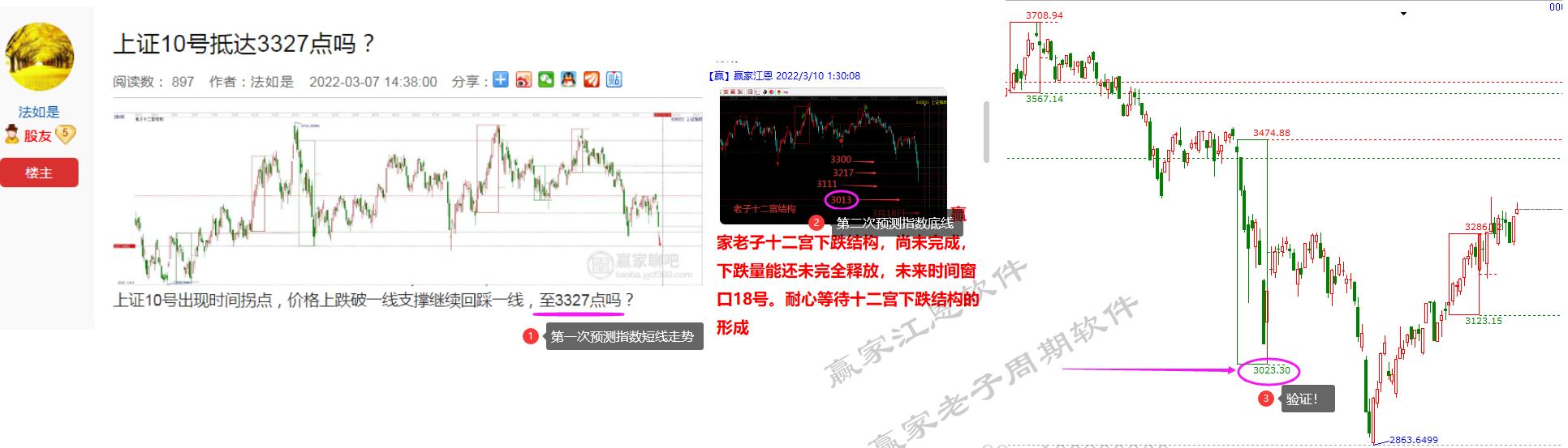 經過前面兩波預測和驗證,接著反彈目標預測老子十二宮警戒線3252點。現在回顧(再次完美印證走出!)。