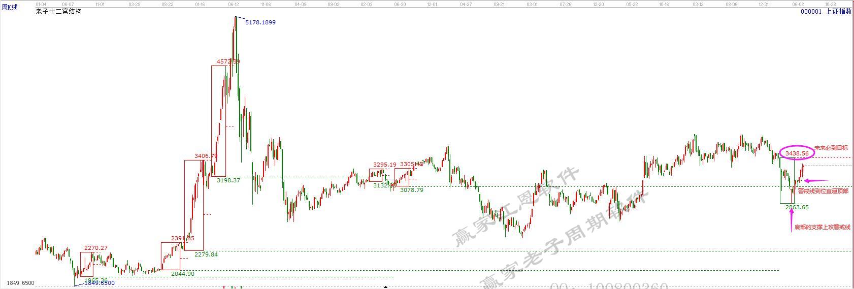 接下來,老子十二宮對于指數周線預測,這波必見3438.56元。