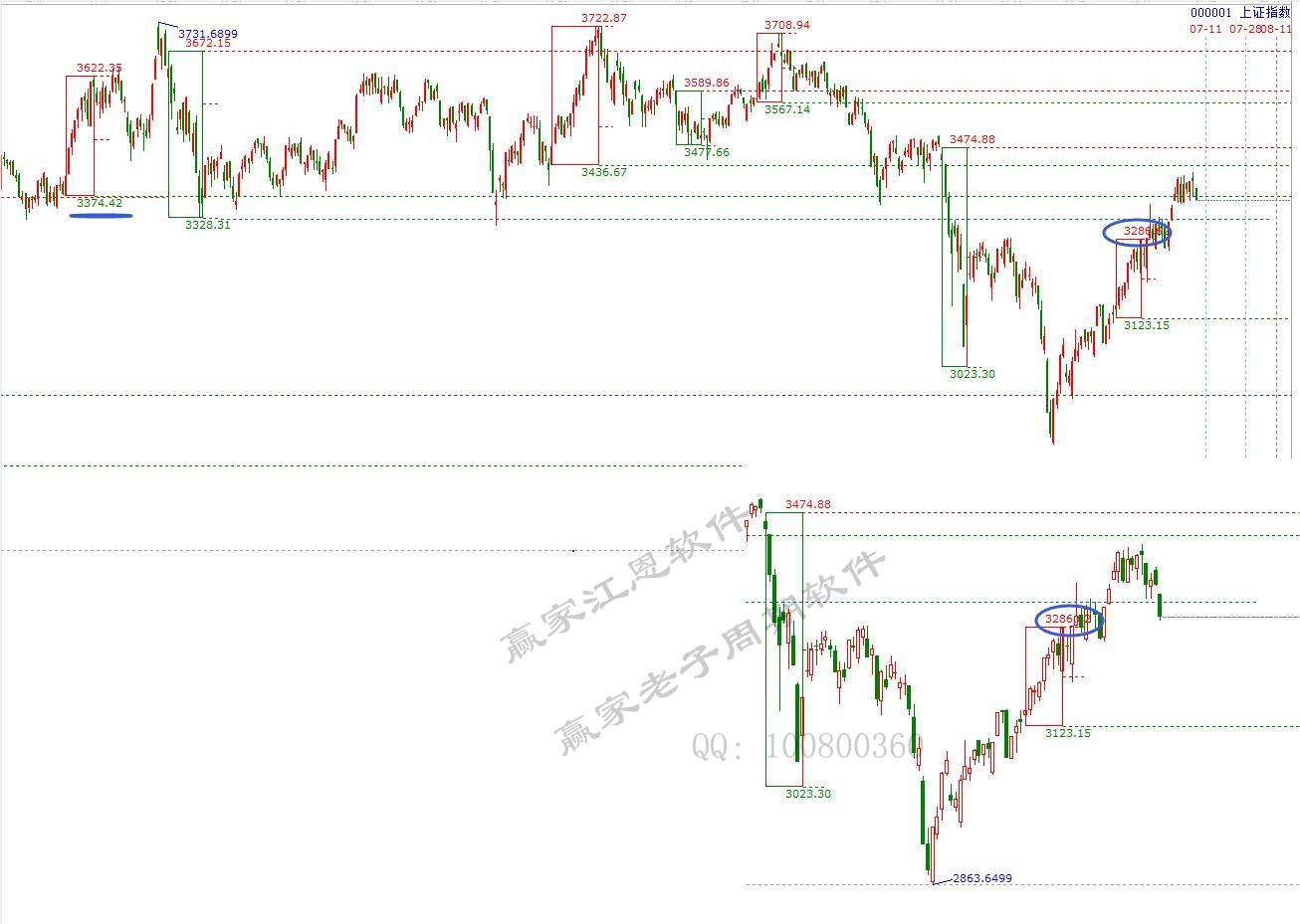 三、預(yù)測(cè)跌破3374點(diǎn),直接回調(diào)3286。圖形今日正在朝著工具信號(hào)走。